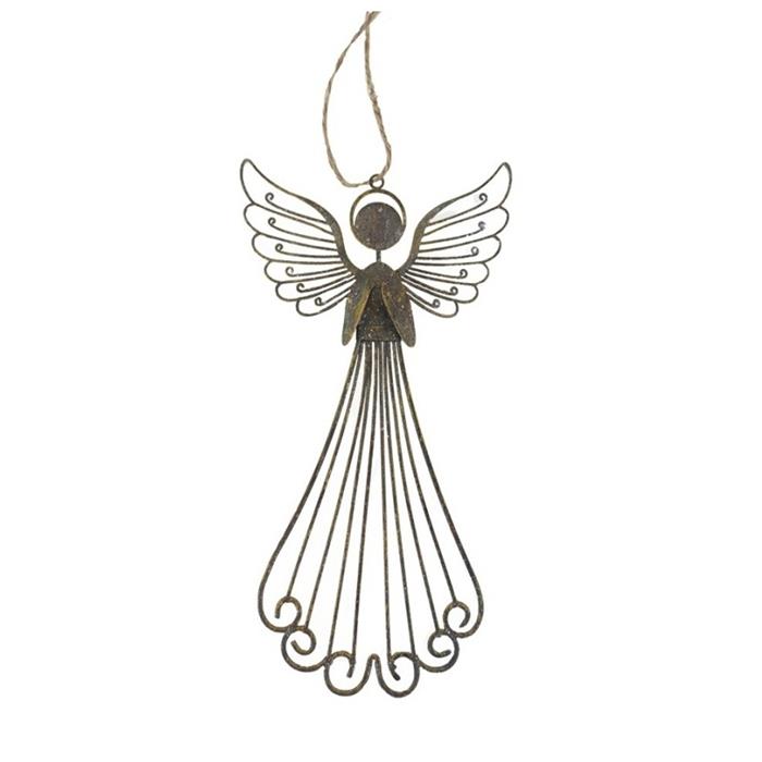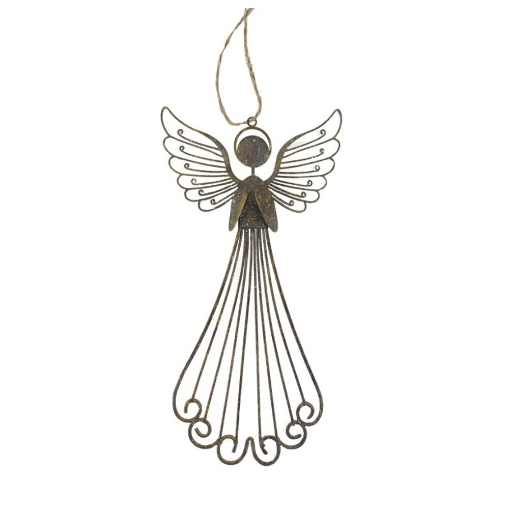 Krásná a vzdušná vánoční ozdoba anděla vyrobená z jemně tvarovaného kovu. Její minimalistické provedení s důrazem na lehkost a symetrii působí něžně a zároveň stylově. Díky praktickému provázku ji snadno zavěsíte na vánoční stromeček, okno nebo stěnu.