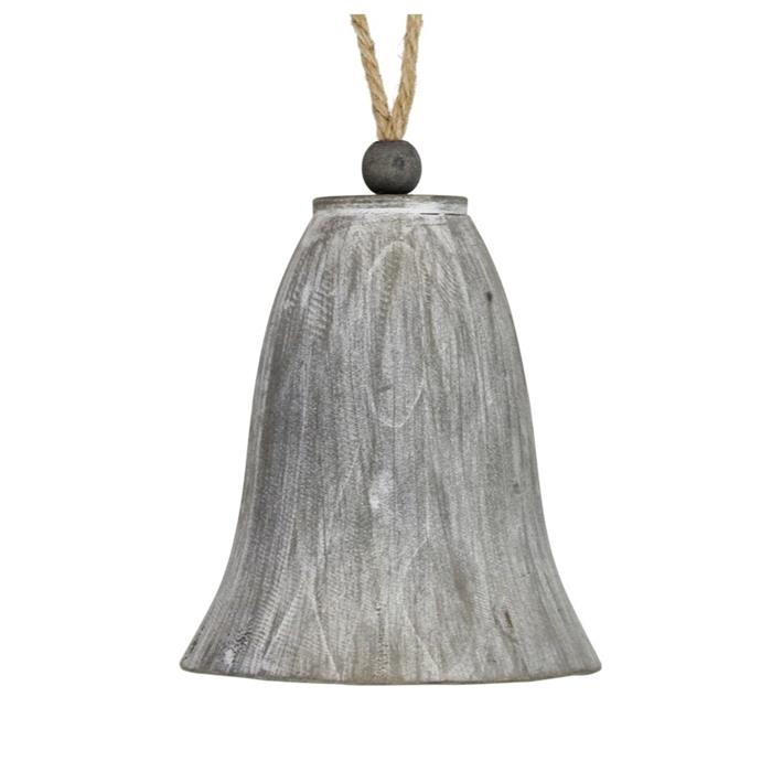 Ozdoba dřevěný zvonek šedý 15cm