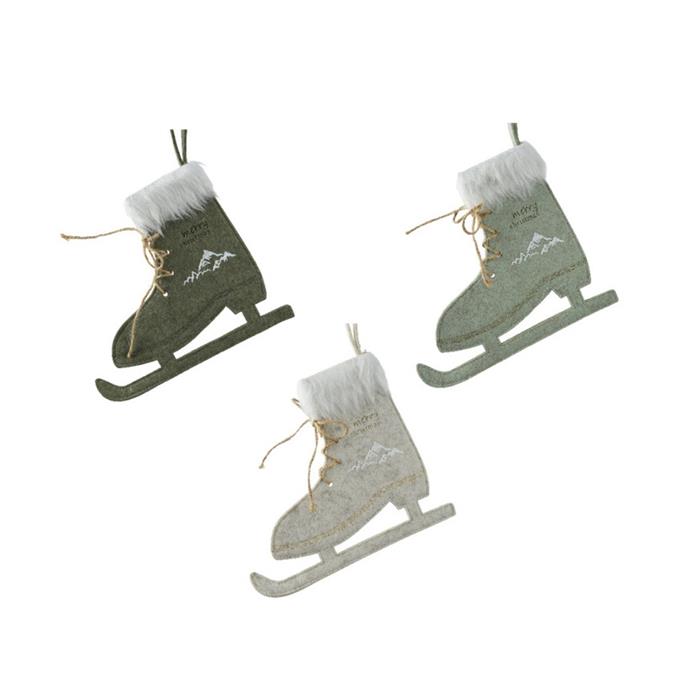 Ozdoba plstěná brusle s kožešinou bílá/zelená mix 25cm