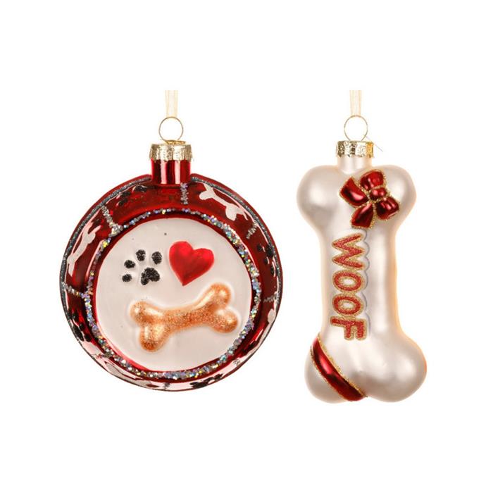 Originální vánoční ozdoby ve tvaru misky s kostí a kosti, zdobené třpytivými glitry. Jsou ideální dekorací pro milovníky psů a netradiční doplněk na váš vánoční stromek. Ozdoba v mixu provedení. Pokud si přejete konkrétní variantu, napište ji do poznámky, pokusíme se vyhovět. V případě nedostupnosti bude odeslán náhodný kus.