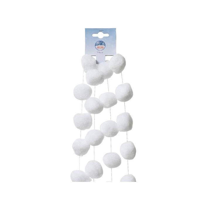 Dodejte svému interiéru něžný a zimní nádech s touto elegantní bílou girlandou z pěnových kuliček. Jemný, čistý design navozuje dojem padajícího sněhu a je ideální pro zimní dekorace sktrumků i aranžmá.