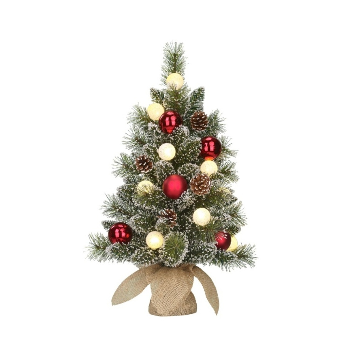 Stromek umělý KAPRUN v jutě s 10LED, t.bílá s časovačem na baterie 60cm