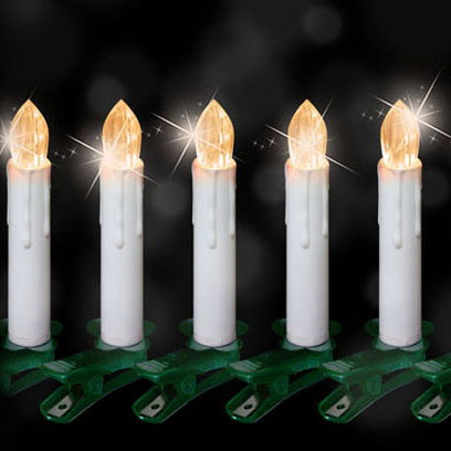 Jako klasické bílé voskové svíčky vypadá řetěz sestavneý z 10 ks bílých svíček, který je určen pro vnitřní využití. Vzdálenost jednotlivých svíček činí 12 cm. Určeno pro použití ve vnitřních prostorách. Napájení je z baterií 2xAAA, které nejsou součástí balení.