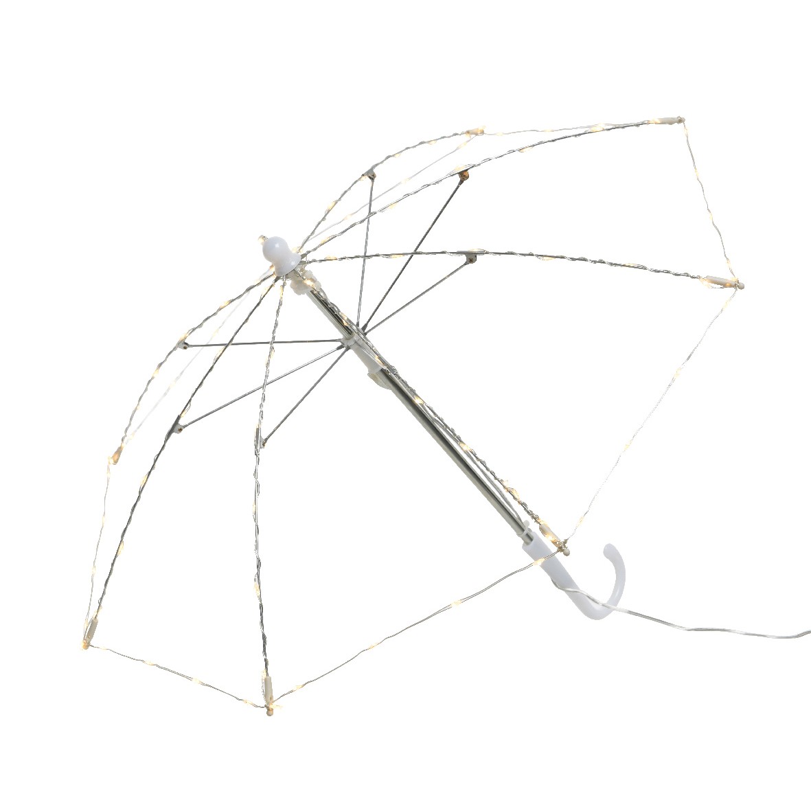 Originální svítící dekorace ve tvaru deštníku, osazená 156 microLED světly v teplé bílé barvě, přináší do vašeho prostoru jedinečnou atmosféru. S průměrem 80 cm je ideální jako světelný akcent do interiérů, ale díky kvalitnímu provedení ji lze použít i venku za suchého počasí.