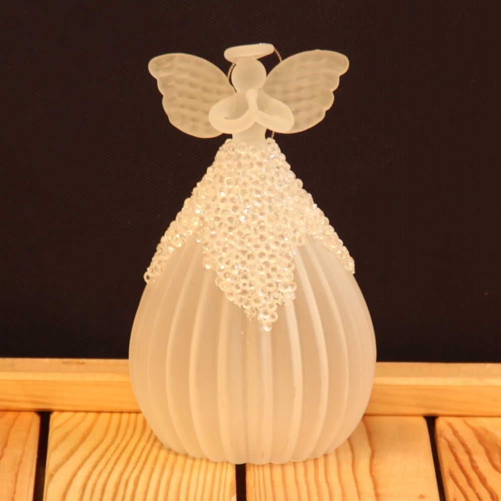 Skleněný anděl pro interiérovou dekoraci s LED osvětlením.