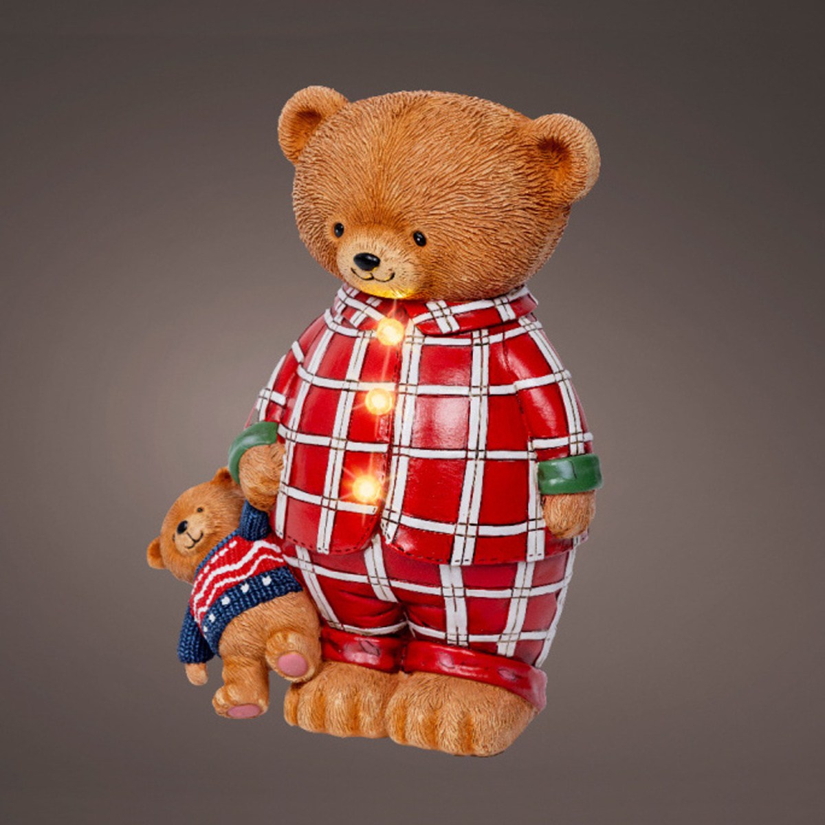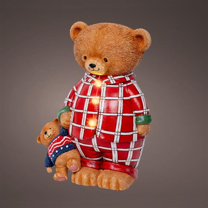 Roztomilý svítící medvídek s hračkou, vyrobený z kvalitního polyresinu, je ideální dekorací nejen pro vánoční období, ale i do dětského pokoje. Jemné LED osvětlení v teplé bílé barvě dodává celé figurce kouzelný nádech.