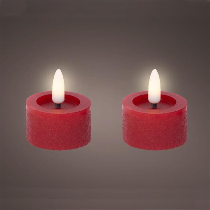 Svíčka čajová červená 1LED t.bílá s časovačem na baterie 2ks