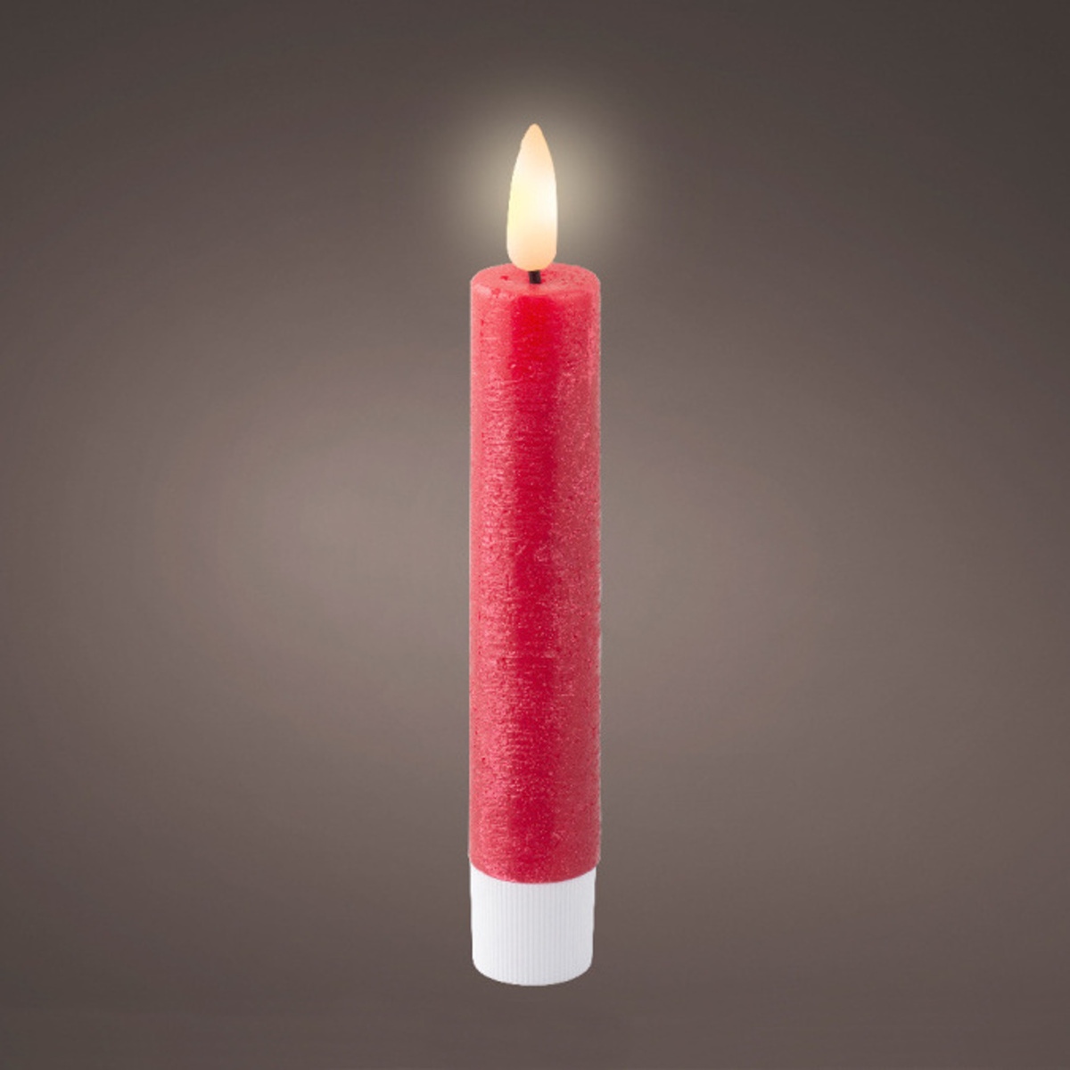 Svíčka kónická červená 1LED s časovačem na baterie 14,5cm/2ks