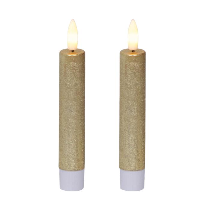 Svíčka kónická zlatá 1LED s časovačem na baterie 14,5cm/2ks