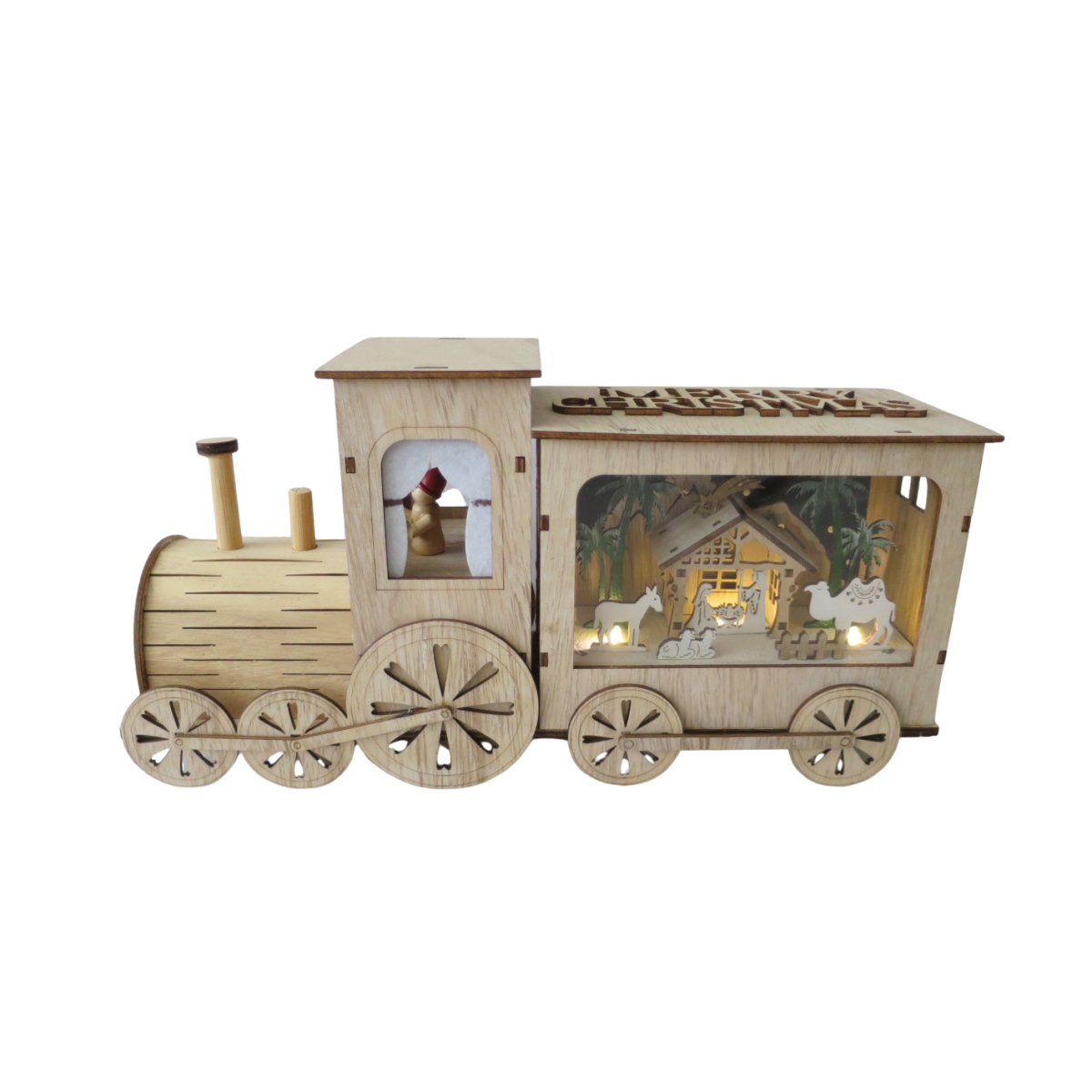 Dřevěný vláček s betlémem ve vagónku a LED osvětlením přináší do vašeho domova kouzelnou vánoční atmosféru. Jemné teplé bílé světlo zvýrazňuje detaily vagónku a vytváří útulný sváteční efekt.