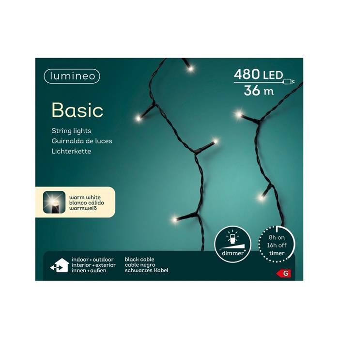Řetěz svítící venkovní Basic 480LED t.bílá s časovačem, stmívačem černý 36m