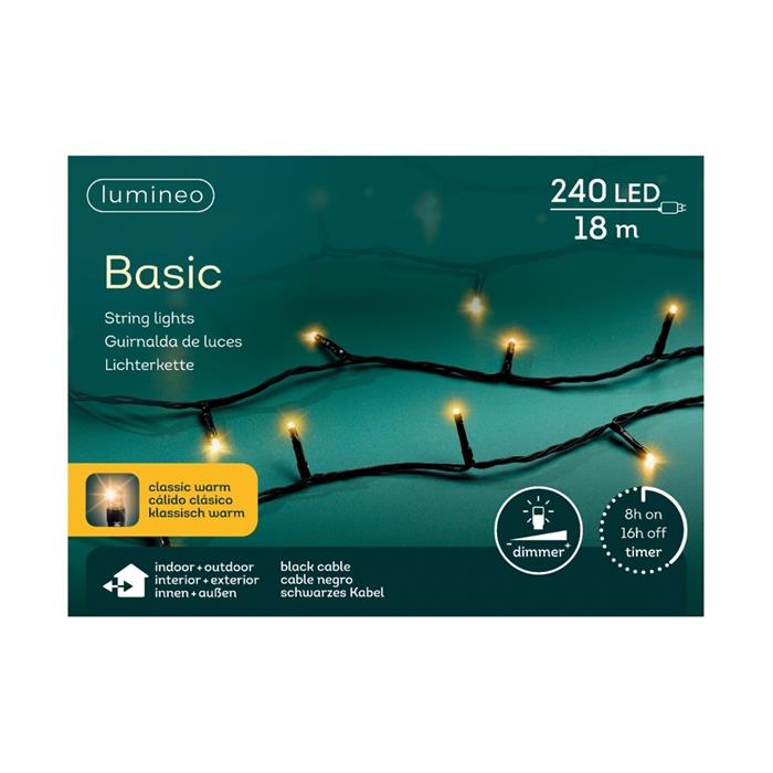 Řetěz svítící venkovní Basic 240LED bílá s časovačem, stmívačem černý 18m