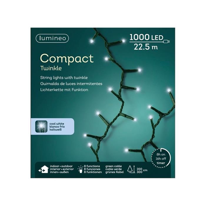 Řetěz svítící venkovní Compact 1000LED st.bílá s časovačem, 8 funkcí zelený 22,5m