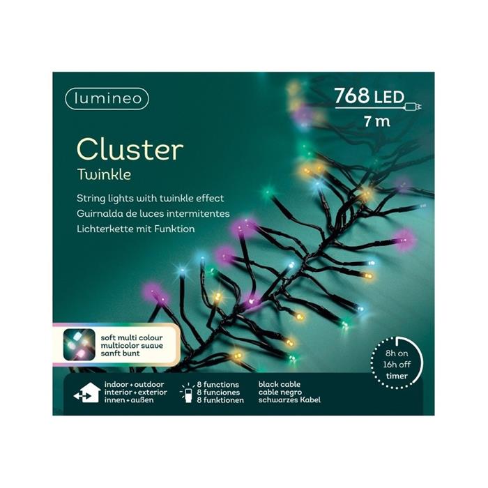 Řetěz svítící venkovní Cluster 768LED soft barevný s časovačem, 8 funkcemi černý 6m