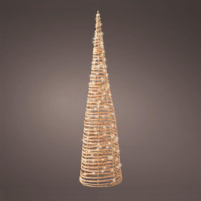 Elegantní proutěný kužel se svítícími LED diodami je stylovou dekorací pro váš domov či zahradu. Světelný kužel v přírodním hnědém odstínu je osazen 80 microLED světýlky v teplé bílé barvě, které vytvoří příjemnou a sváteční atmosféru. Díky časovači se dekorace ovládá pohodlně a úsporně. Vysoký 60 cm kužel se hodí pro venkovní i vnitřní použití, skvěle doplní vchod, terasu, balkon nebo obývací pokoj.