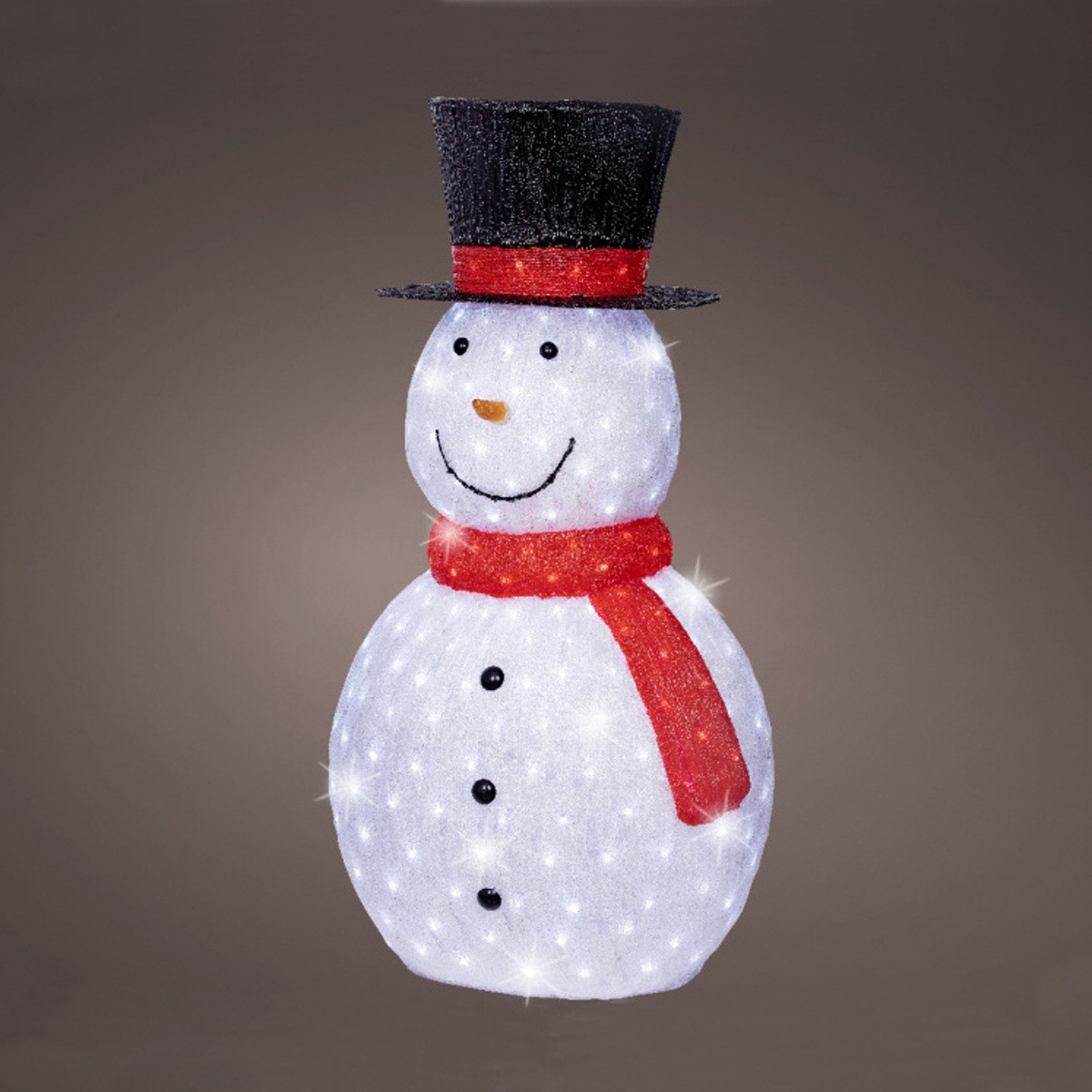 Roztomilý svítící sněhulák s černým cylindrem a červenou šálou vnese do vaší zahrady nebo domova pravou zimní pohodu. Vyrobený je z odolného akrylu a osazený 300 LED diodami ve studené bílé barvě, které rozzáří okolí a navodí kouzelnou vánoční atmosféru. Díky časovači (8 h svítí / 16 h vypnuto) se dekorace ovládá snadno a úsporně. Vhodný pro interiér i exteriér – krásně se hodí k vchodovým dveřím, na terasu i do obývacího pokoje.