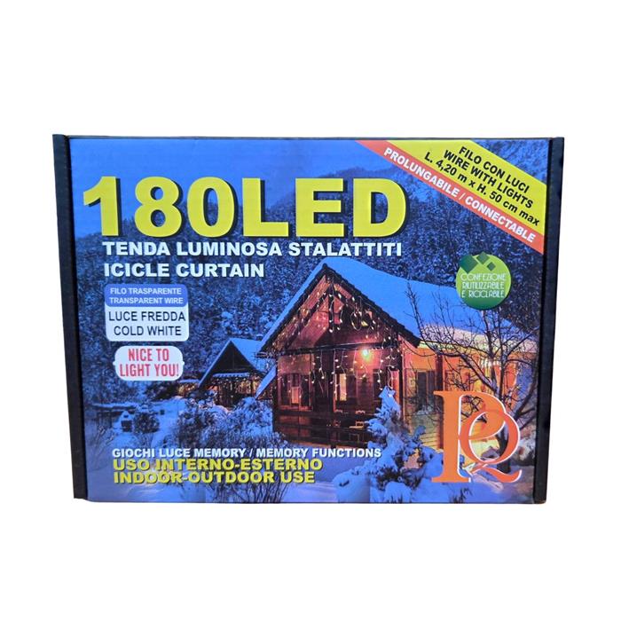 Záclona svítící venkovní 180LED, st.bílá transparentí 4,2m