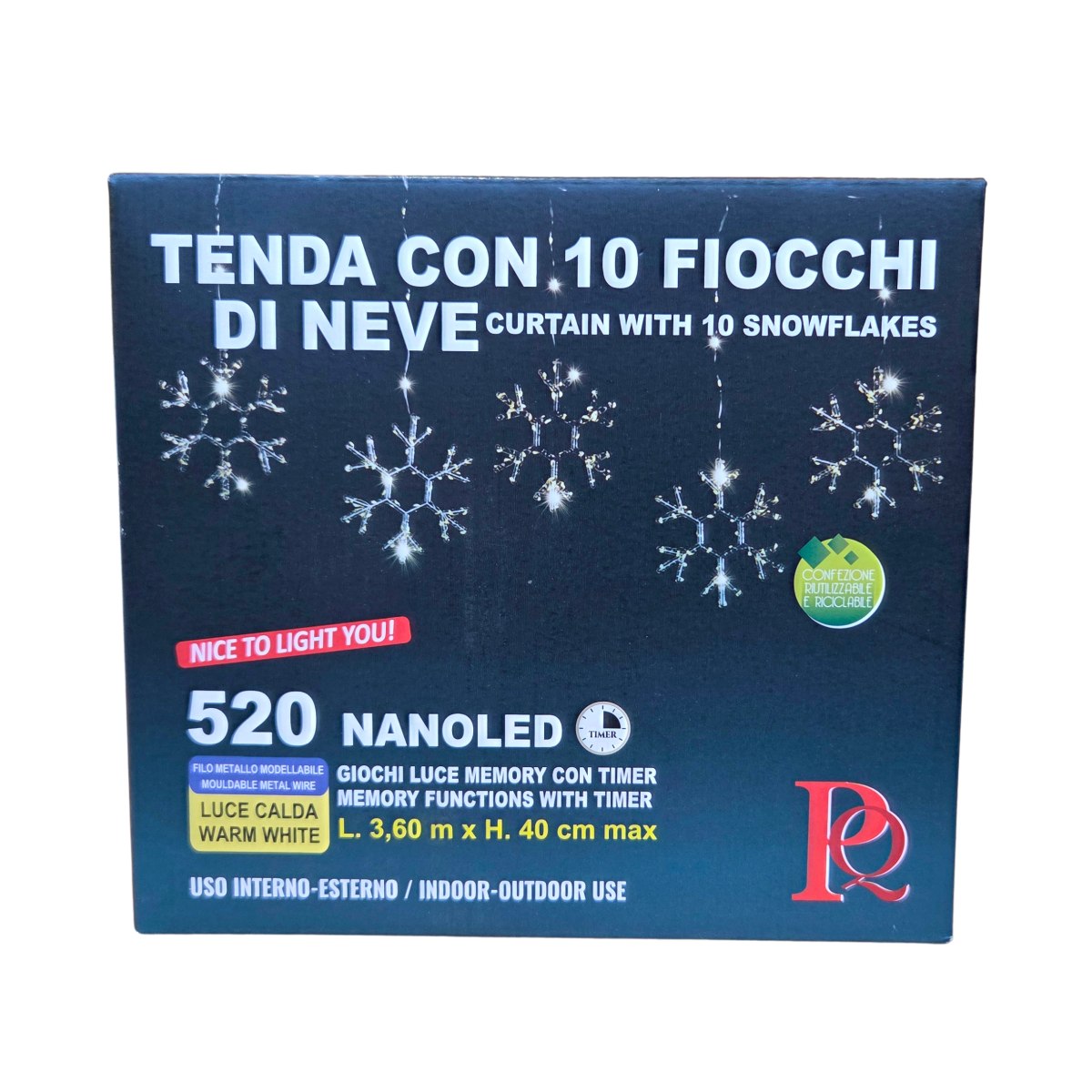 Záclona 10 vloček svítící venkovní 520LED, t.bílá s časovačem, stříbrná 3,6m