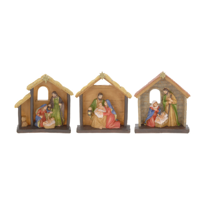 Tradiční vánoční jesličky se Svatou rodinou v detailním provedení z polystonu. Výška je 13 cm a díky kvalitnímu zpracování působí velmi dekorativně – ideální pro slavnostní výzdobu domova i jako milý dárek.