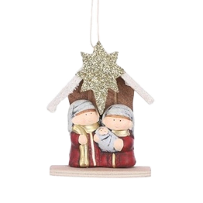 Keramický betlém Svatá rodina o výšce 14 cm je kompaktní vánoční dekorací vhodnou k zavěšení. Tento malý betlém přináší tradiční vánoční symboliku přímo do vašeho domova a skvěle doplní jakýkoliv prostor. Díky svému rozměru je vhodný pro zavěšení na stěnu, okno či vánoční stromek.