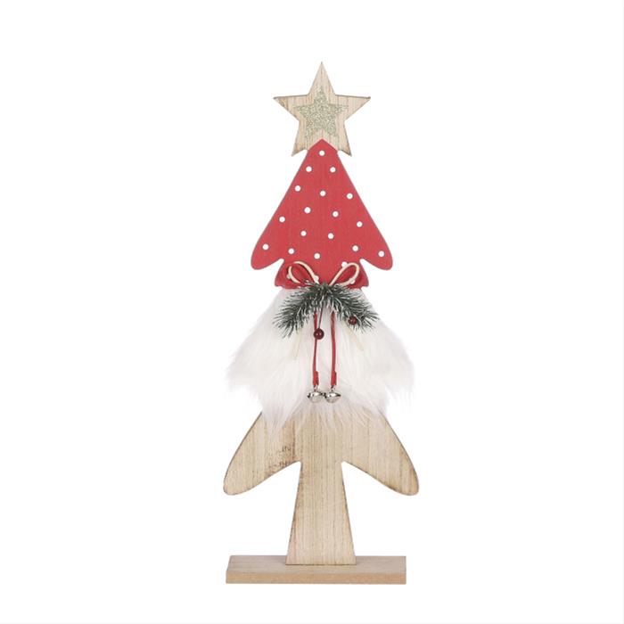 Strom dřevěný na podstavci přírodní-červená 41cm