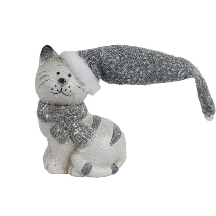 Keramická figurka kočky o výšce 13 cm, oblečená do vánoční čepice a šály v elegantní bílo-šedé kombinaci, je ideálním doplňkem zimní i vánoční výzdoby. Díky své detailní ruční výrobě a jemným barevným odstínům dodá vašemu domovu příjemnou a útulnou atmosféru.