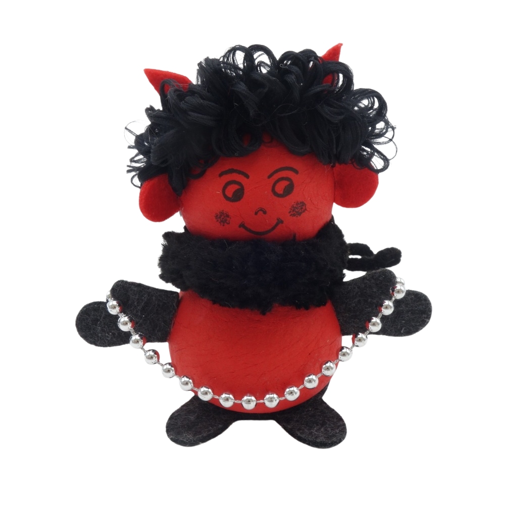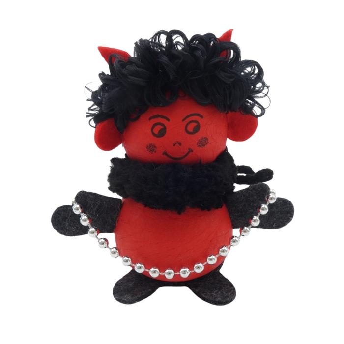 Tato roztomilá dekorace stojícího čerta s šálou v červeno-černých barvách je ideálním doplňkem pro vánoční výzdobu vašeho domova či kanceláře. Výška 15 cm umožňuje umístění na poličku, stůl nebo parapet.