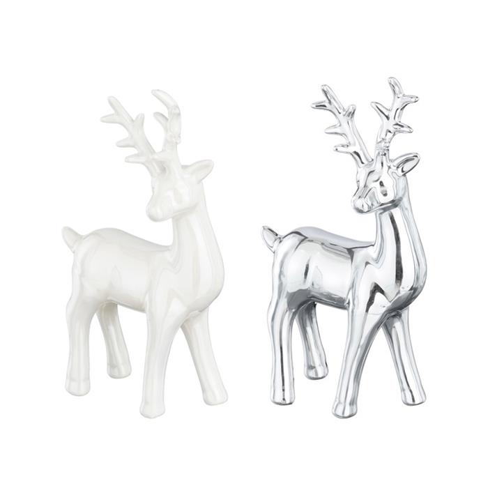 Jelen stojící keramický bilý/stříbrný mix 21,5cm
