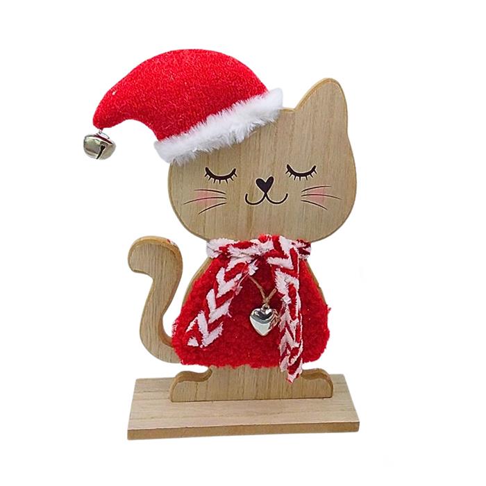 Ozdobte svůj domov originální dřevěnou kočkou s čepicí, rolničkou a červeným svetrem. Tato milá dekorace z přírodního dřeva přináší do interiéru teplo, radost a sváteční náladu. Je ideálním doplňkem pro zimní a vánoční výzdobu. Díky detailnímu zpracování působí hravě a potěší děti i dospělé.