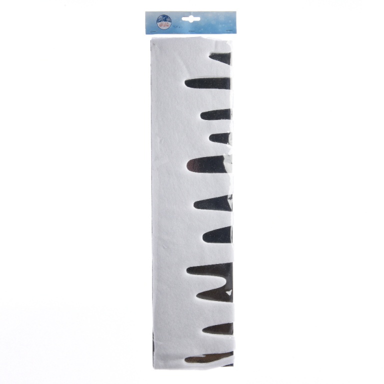 Obruba je vyrobena z lehké plsti, která se snadno připevňuje (např. lepicí páskou, háčky nebo špendlíky) a lze ji opakovaně použít. Rampouchový motiv navozuje pocit mrazivé zimy a krásně doplní sváteční atmosféru.