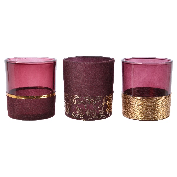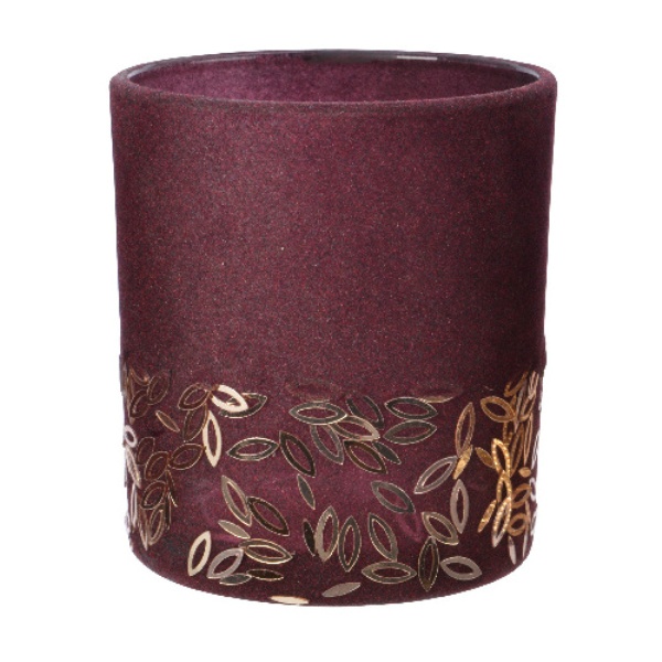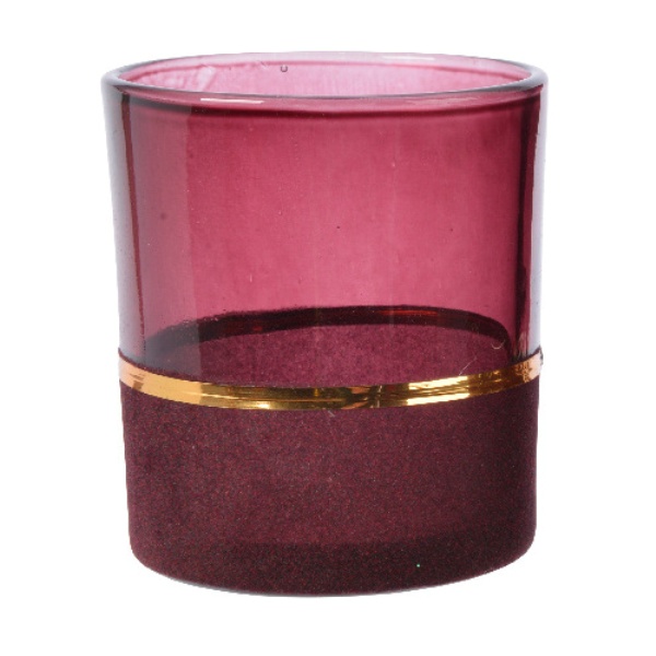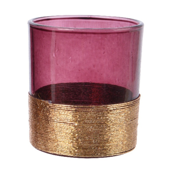 Svícen na čajovku válec zlatý lem skleněný 8cm vínový mix