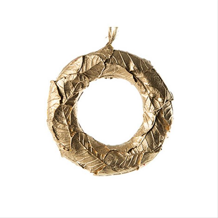 Ozdoba kruhu zdobený zlatými listy pro interiérovou dekoraci.