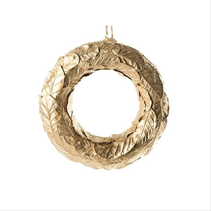 Ozdoba kruhu zdobený zlatými listy pro interiérovou dekoraci.