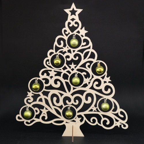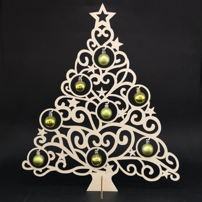 Popis produktu Strom s ozdobami 3D dřevěný 46cm