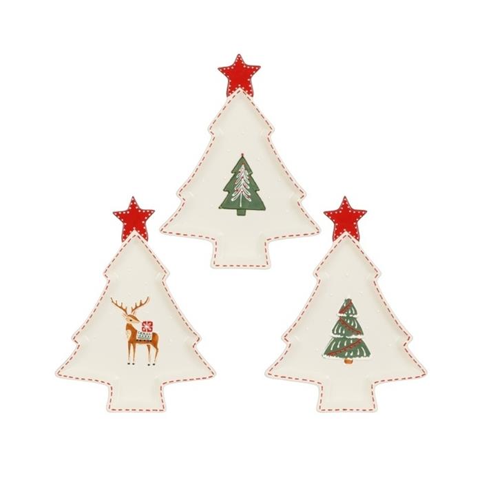 Vytvořte pravou sváteční atmosféru s naším krásným keramickým talířem ve tvaru vánočního stromku! Tento originální talíř je ozdoben třemi různými tradičními vánočními motivy. Talíř v mixu provedení. Pokud si přejete konkrétní variantu, napište ji do poznámky, pokusíme se vyhovět. V případě nedostupnosti bude odeslán náhodný kus.