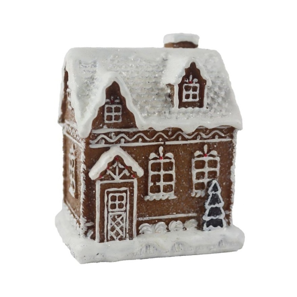 Popis produktu Perníkový dům polyresinový bílo-hnědý 10,5cm