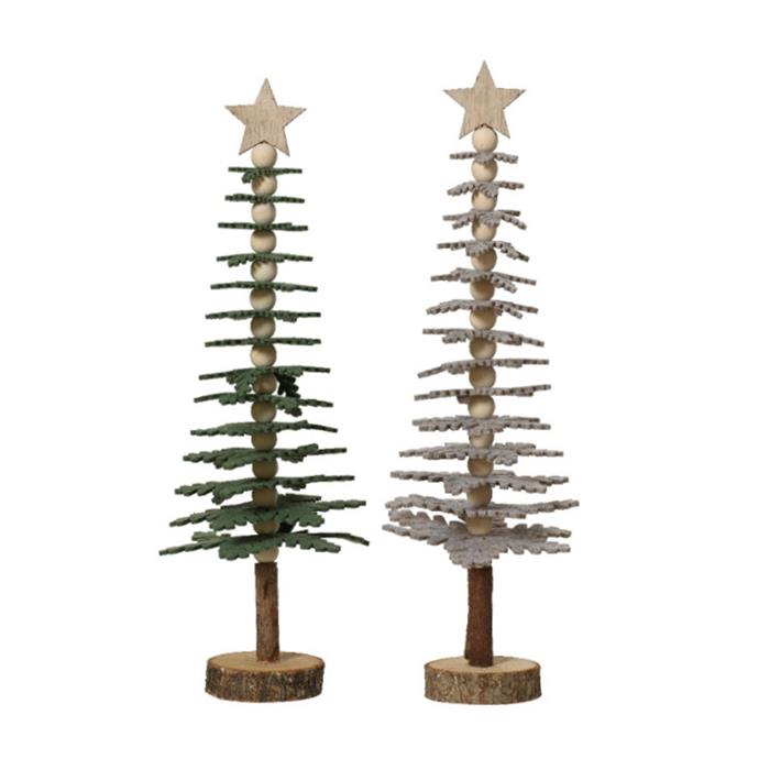 Ozdobte svůj domov originálním vánočním stromkem z plstěných vloček, který je zakončený dřevěnou hvězdou. Díky kombinaci přírodního podstavce a jemného barevného provedení v šedé nebo zelené barvě působí elegantně a útulně zároveň. Perfektní dekorace na stůl, komodu či okenní parapet. Strom v mixu provedení. Pokud si přejete konkrétní variantu, napište ji do poznámky, pokusíme se vyhovět. V případě nedostupnosti bude odeslán náhodný kus.