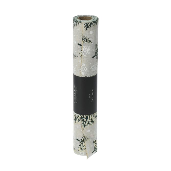 Běhoun se stromky a vločkami polyamidový béžový 28x200cm