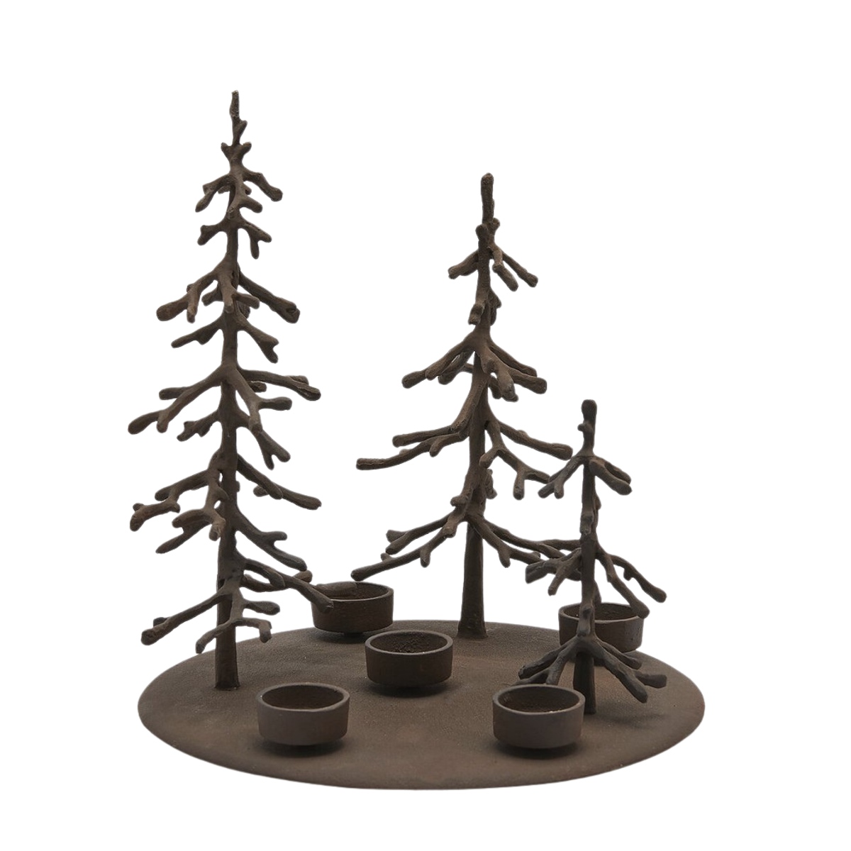 Stylový kovový svícen se stromy je perfektní dekorací pro vytvoření útulné a slavnostní atmosféry. Světlé body svíček krásně doplňují siluety stromů a vytvářejí příjemnou hru stínů. Svícen je určen pro 5 čajových svíček. Díky pevné kovové konstrukci je stabilní a bezpečný pro použití v interiéru.