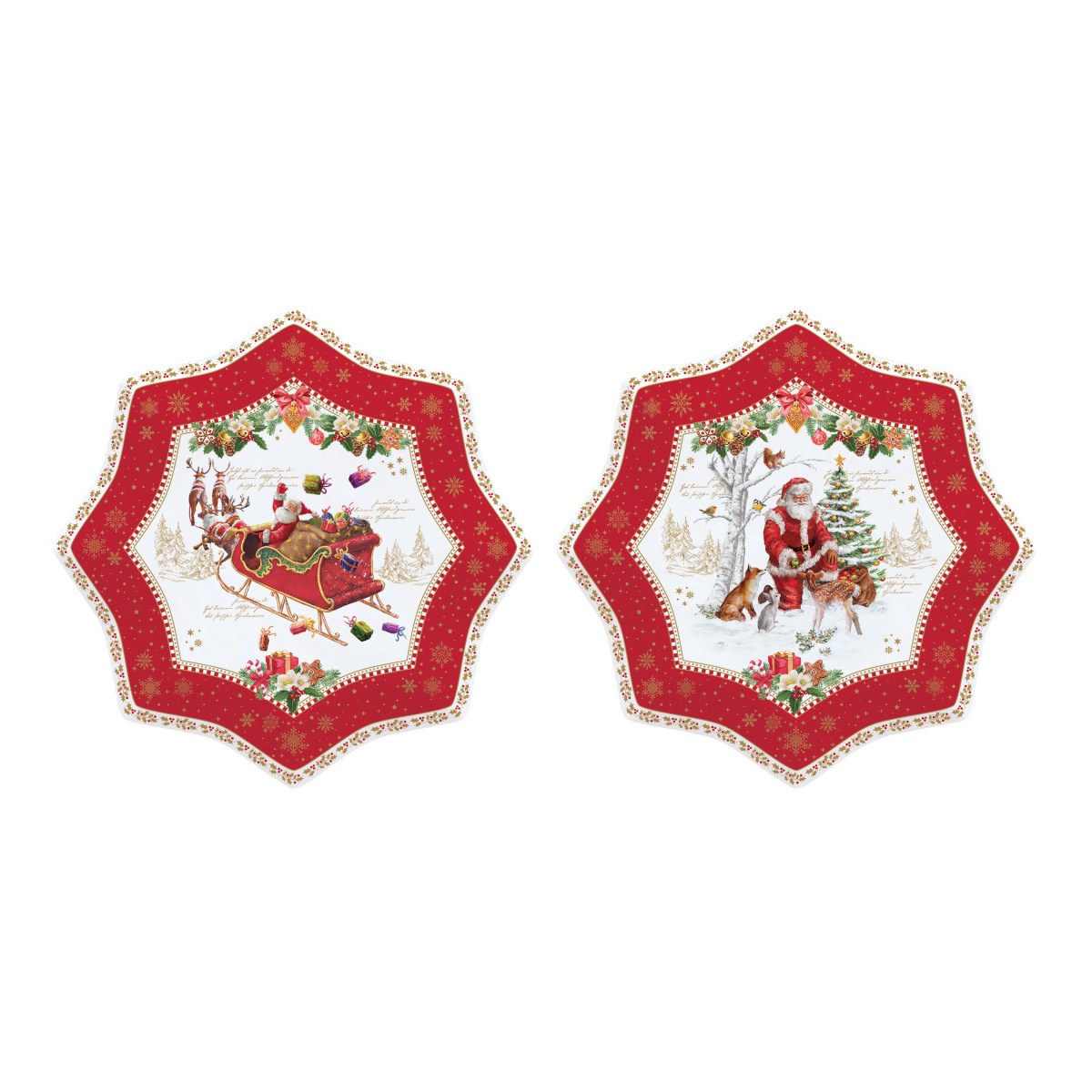 Vánočně laděná sada dezertních talířků CHRISTMAS MEMORIES ve tvaru hvězdy je ideální pro servírování dezertů, cukroví nebo drobných svátečních pochutin. Stylový vánoční motiv přináší do stolování slavnostní a útulnou atmosféru a skvěle doplní sváteční tabuli.