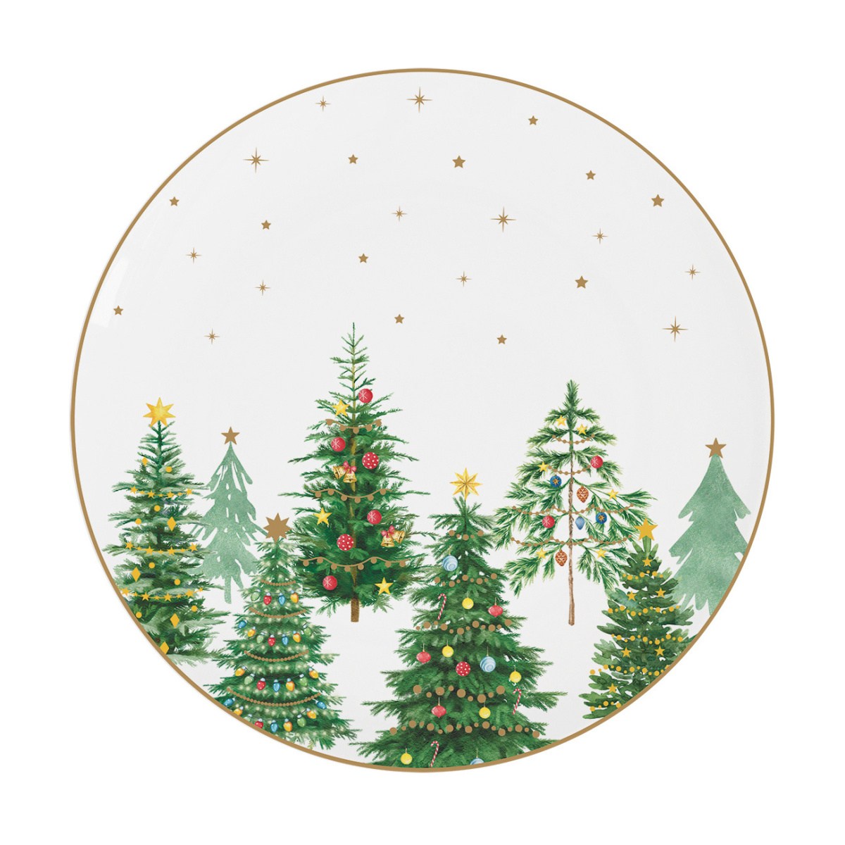 Vánočně laděný dezertní talíř FESTIVE TREES z kvalitního bílého porcelánu je ideální pro servírování dezertů, cukroví nebo drobných svátečních pochutin. Stylový dekor s motivem vánočních stromků dodává stolování slavnostní a útulnou atmosféru, vhodnou pro vánoční tabuli.
