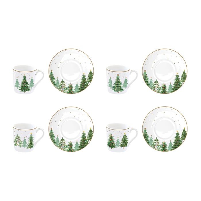 Sada porcelánových šálků a podšálků FESTIVE TREES 4ks