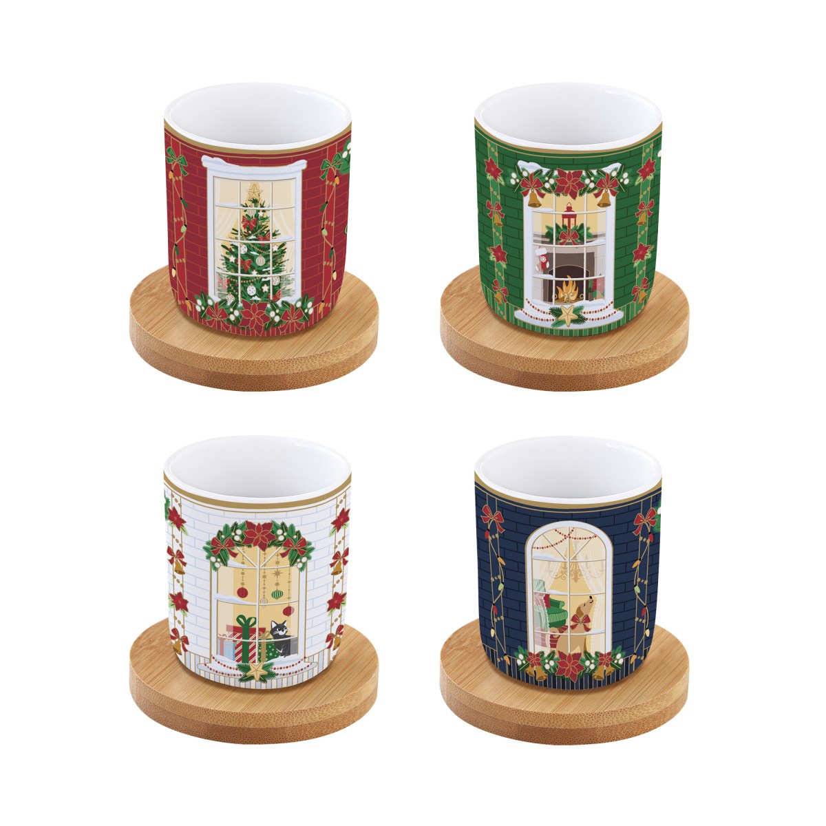 Stylová sada šálků FESTIVE AVENUE kombinuje eleganci porcelánu s přírodním vzhledem bambusových podšálků. Vánoční dekor s jemnými motivy dodá stolování slavnostní atmosféru, zatímco bambusové podšálky zajistí praktické a estetické servírování. Ideální pro kávu, čaj či horkou čokoládu během svátečních chvil.