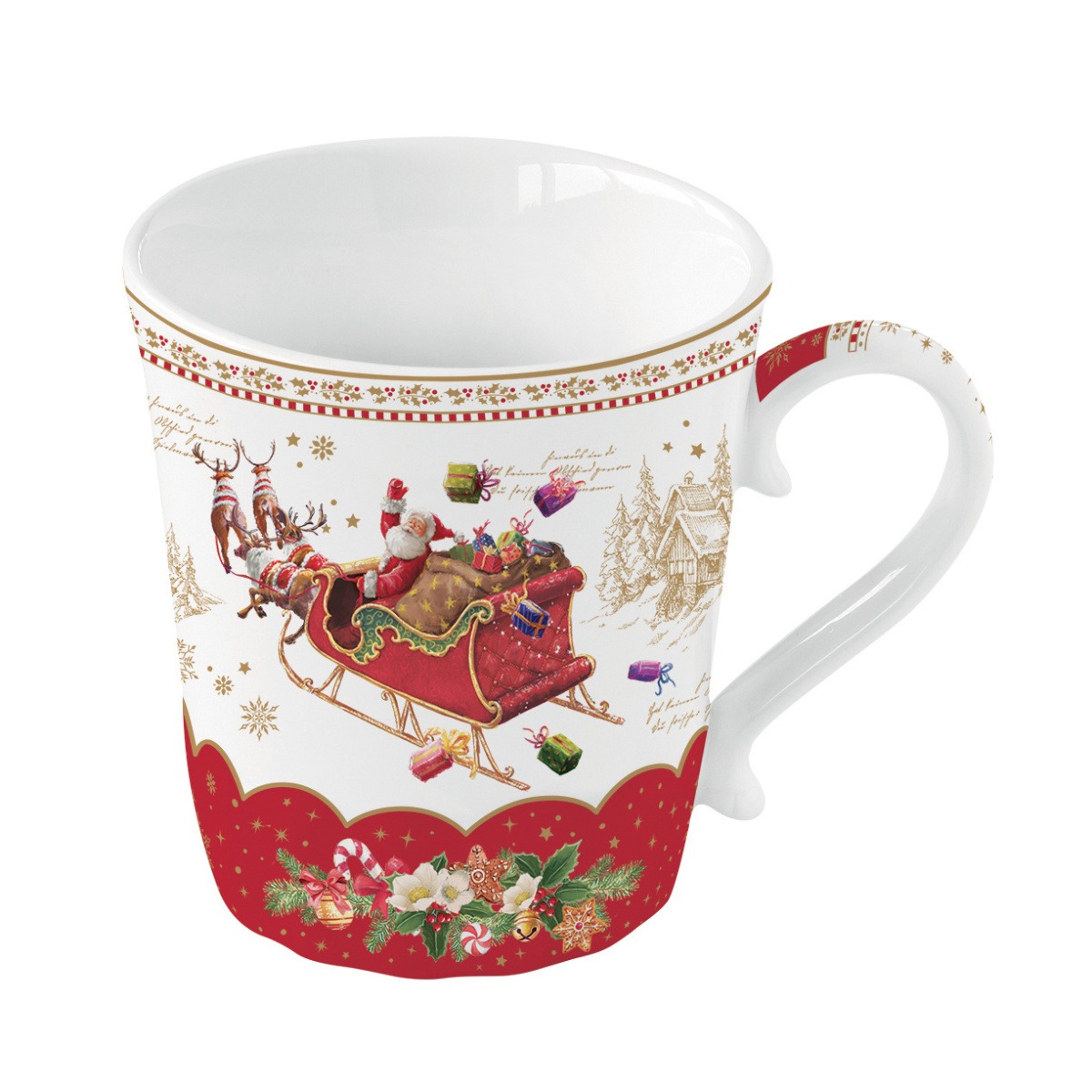 Vychutnejte si svůj oblíbený nápoj v porcelánovém hrnku z kolekce CHRISTMAS MEMORIES, která v sobě spojuje kouzlo tradičních Vánoc a eleganci kvalitního porcelánu. Jemné vánoční motivy v červených a zlatých tónech navodí tu pravou sváteční atmosféru u každého doušku.