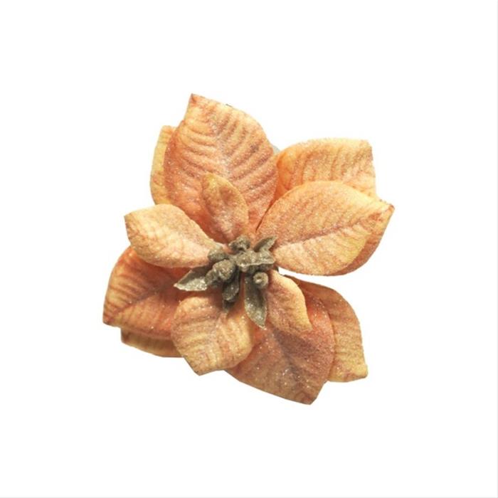 Poinsettia ODA květ na klipu umělá oranžová 11cm