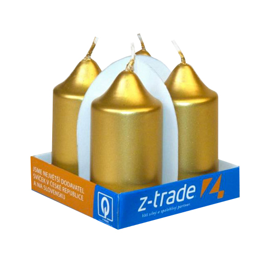 Svíčka válcová metalická zlatá 7,5cm/4ks