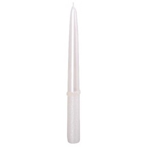 Svíčka kónická drápaná vlnka perleťová bílá 23cm