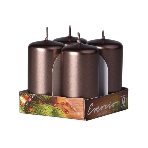 Svíčka válcová metalická hnědá 7,5cm/4ks