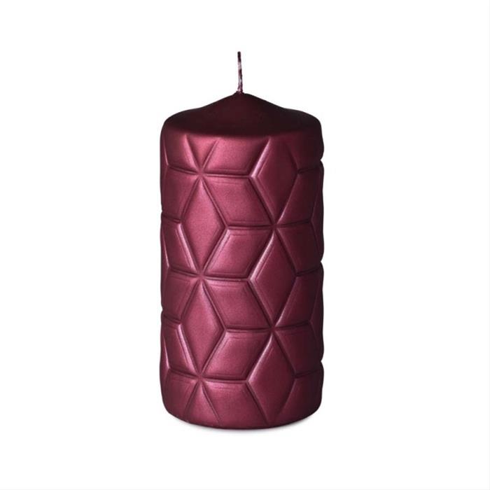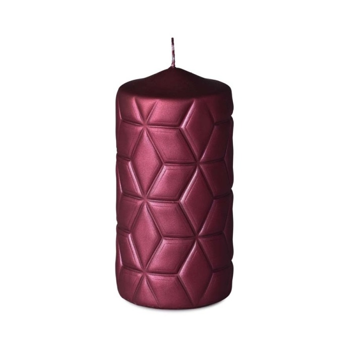 Svíčka válcová s ornamenty metalická vínová 14cm