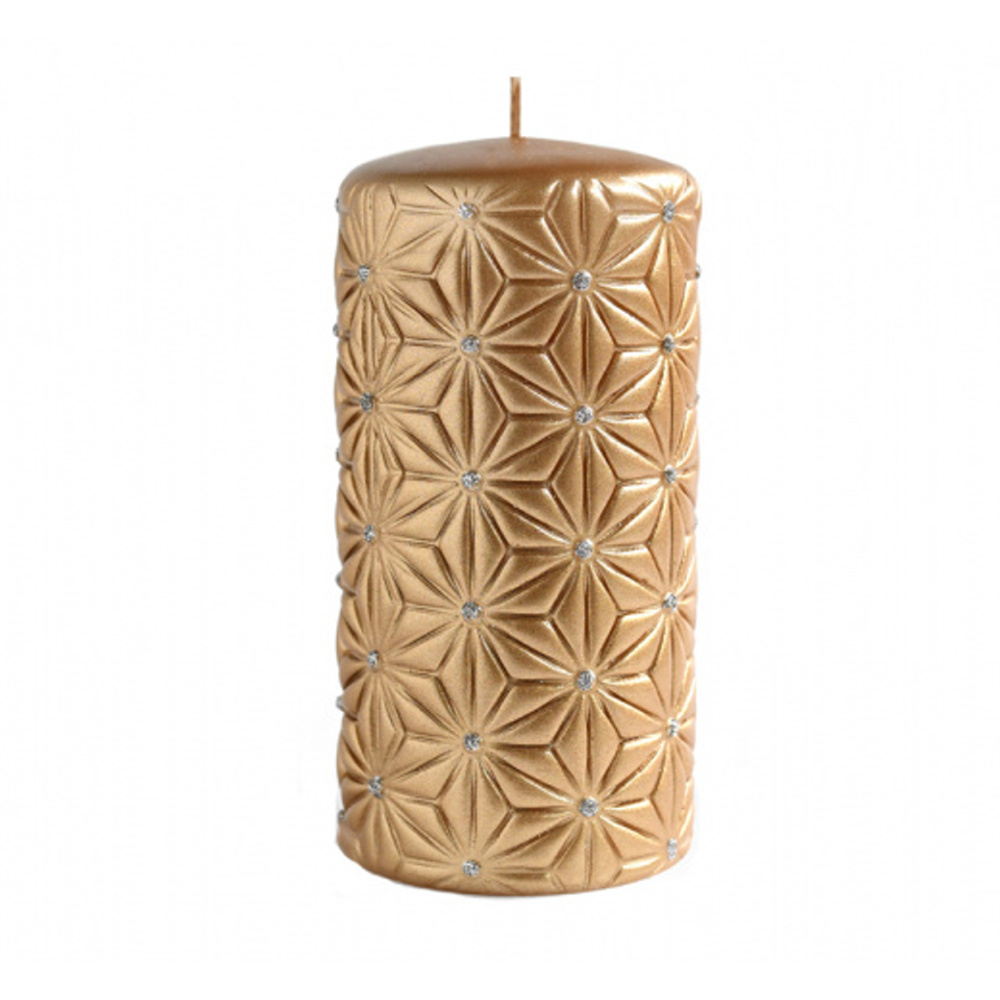 Svíčka válcová RAVENNA metalická s hvězdami zlatá 14cm